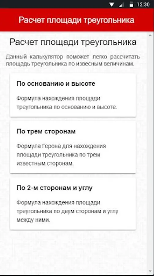 Triangle Area Calculator Screenshots