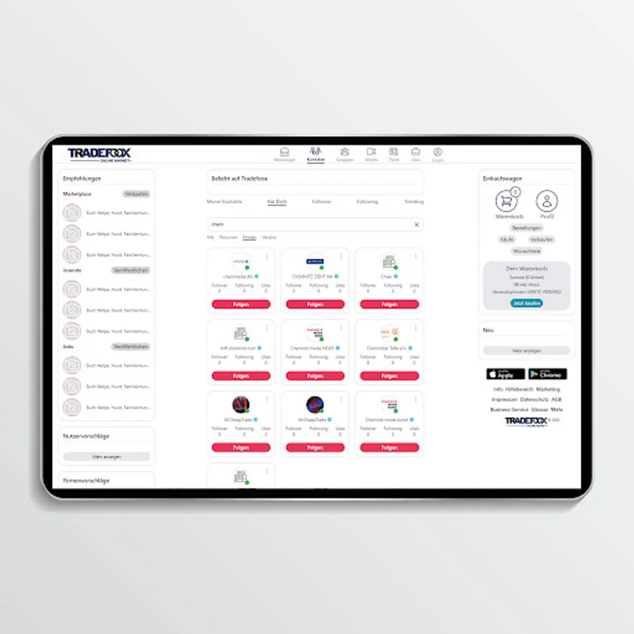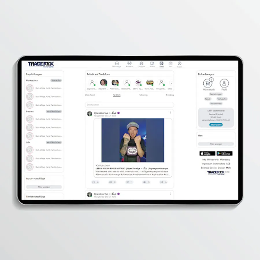 With us, you as a private individual, company or club can easily post your latest information as a feed or short video, place or find orders, place job offers and advertisements and much more. Time-consuming research for suitable jobs, projects and suitable service providers on endless pages is now a thing of the past.