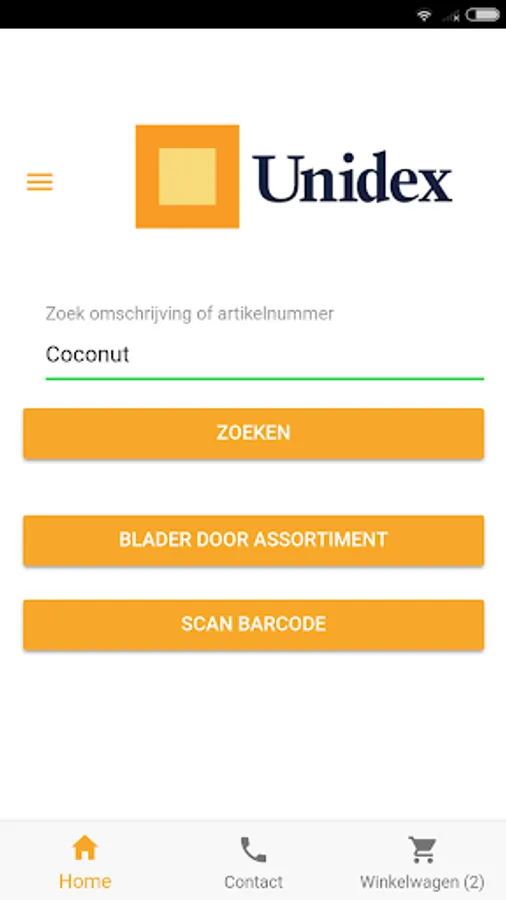 Use this application to send your orders to our Unidex Backoffice Salesteam for easy ordering. This app requires an active registration id. You can request your account from within the app or contact your Unidex salesperson.