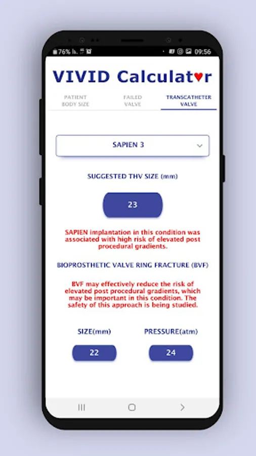 • The calculator describes whether a condition is associated with high risk for elevated post procedural gradients that may be of benefit for supra annular device implantation.