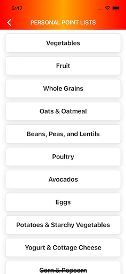 ZERO POINT FOOD LISTS: