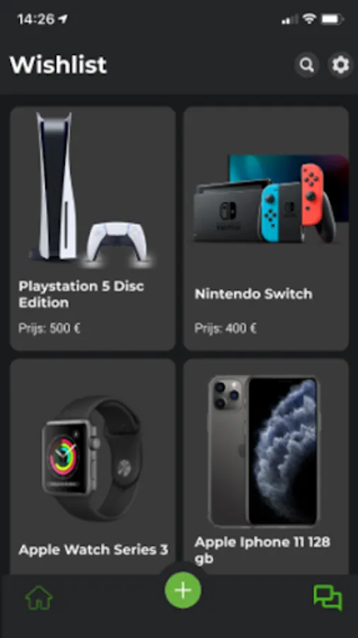 In this app you can create a wish list and you can consult the wish list of other users. You can also communicate with other users in a chat room.