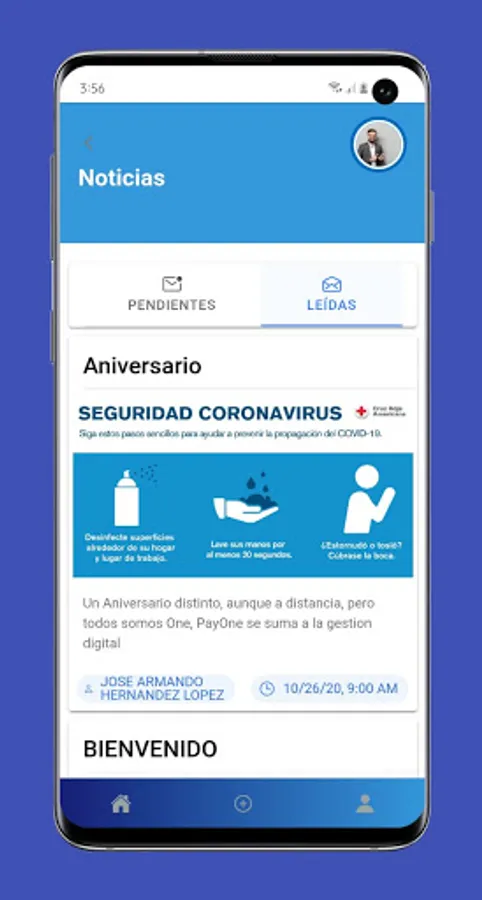 Through it you will have access to the PayOne services of your organization as a collaborator, vacations, permits, information about the organization and much more in your hands