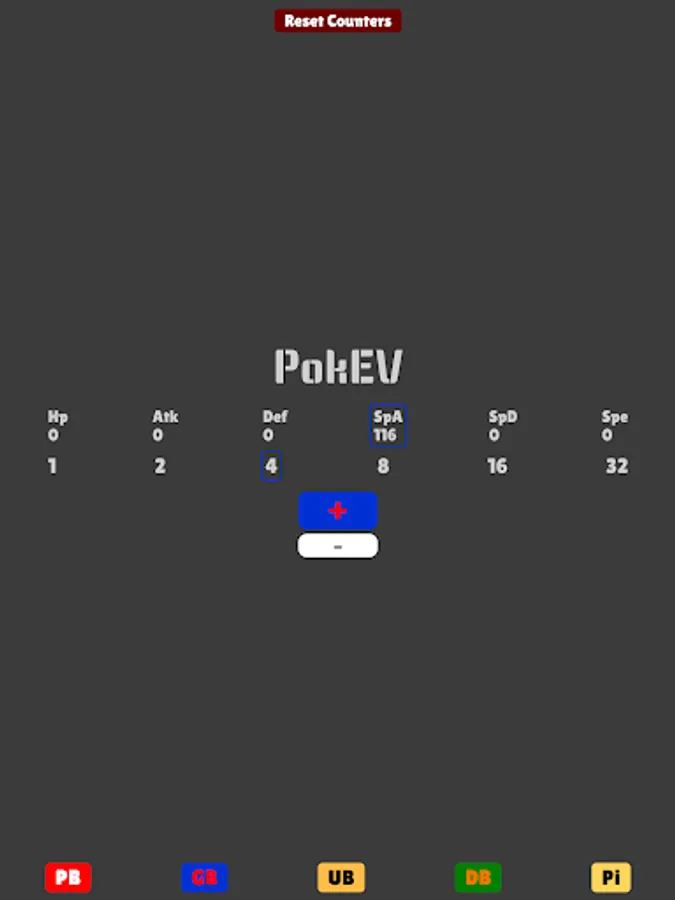 PokEV is an EV(effort value) tracker to be used while EV training your mons in most games.