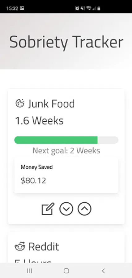 Sobriety Tracker aims to help you quit any addiction by counting the time since they were last participated in, as well as set goals for you to reach. The app can optionally tell you how much money and/or time has been saved since quitting.