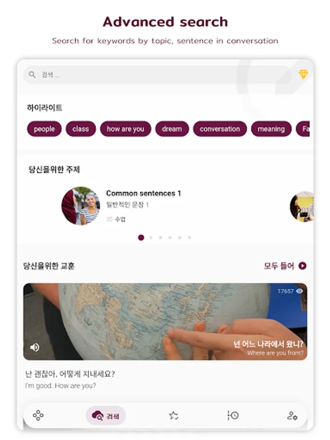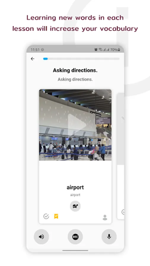 + Speaking and recording: listen and repeat after native English speakers, then start recording and replay your speech later.
