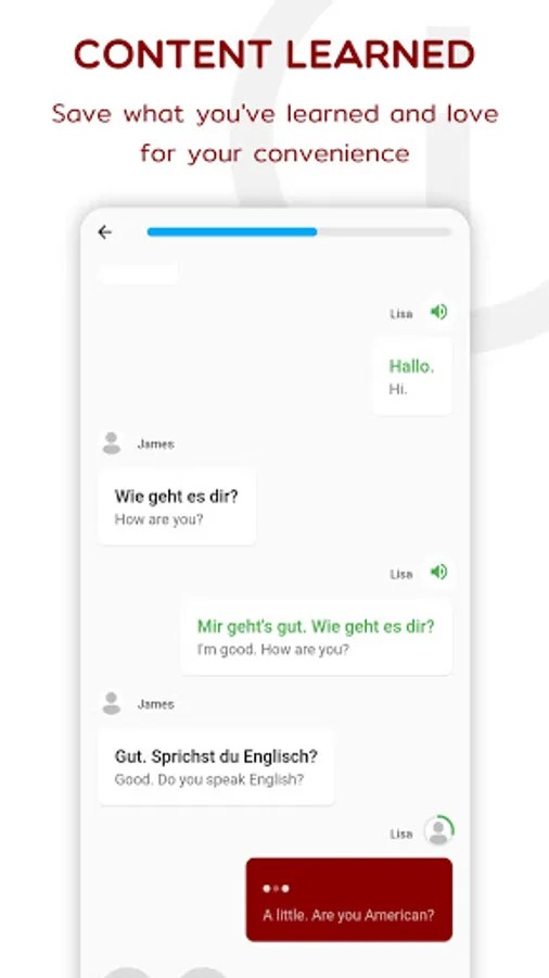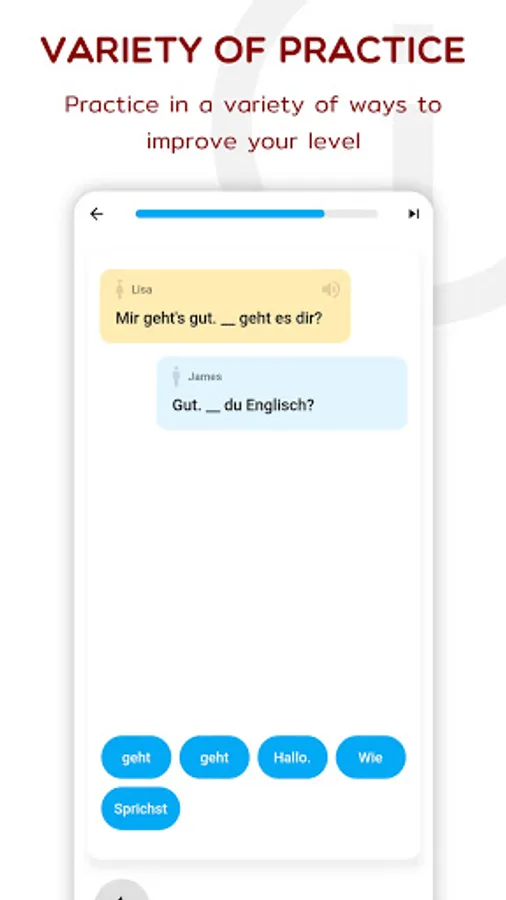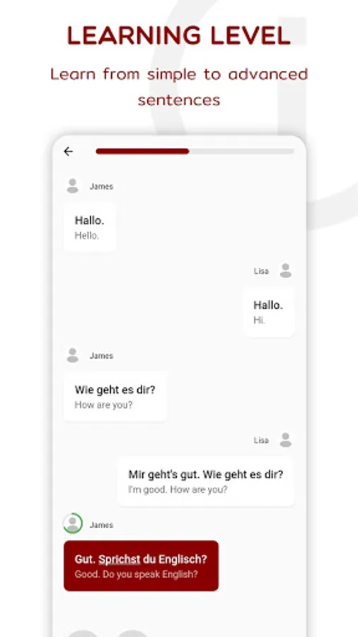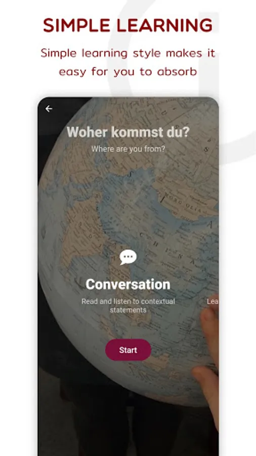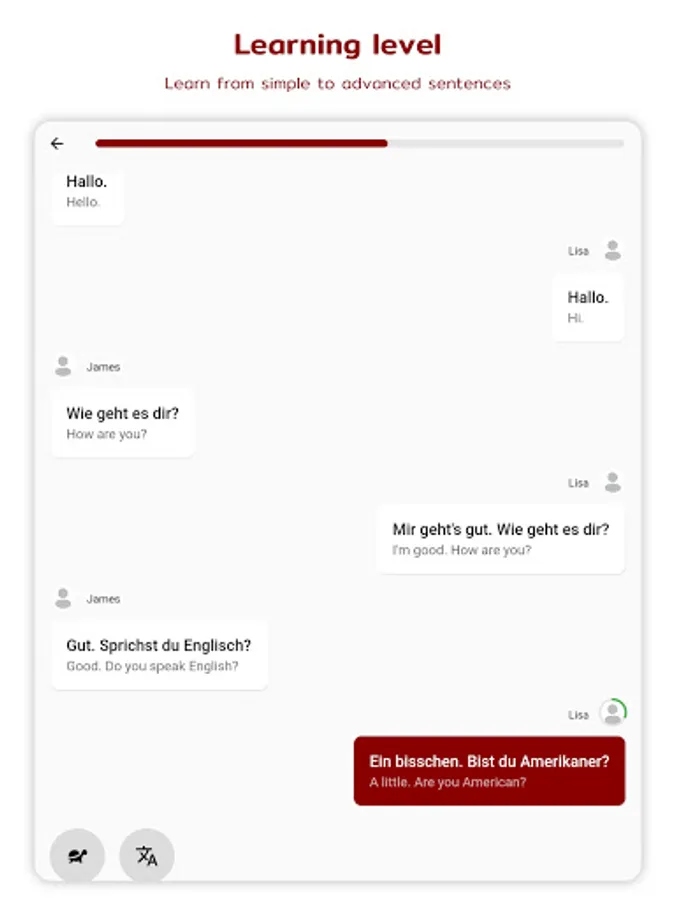Our step-by-step learning process has been designed to provide users with a better understanding of the German language. You can touch any word to learn its meaning, and expand your vocabulary in no time.