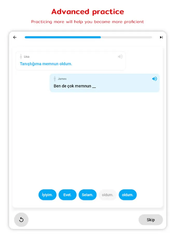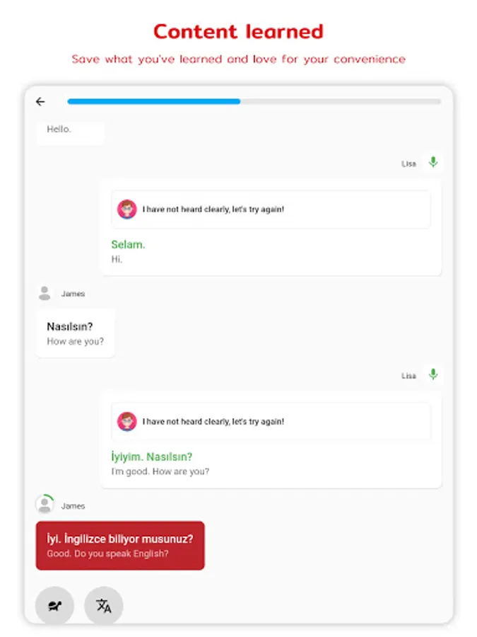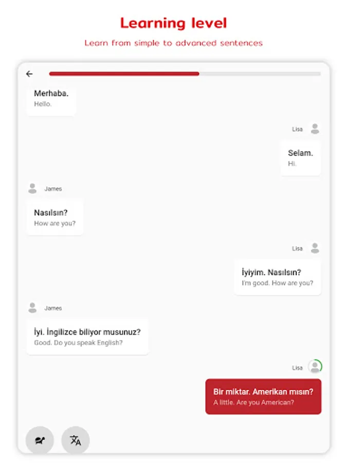 The step-by-step learning process has been improved, providing users with a better understanding of the Turkish language. Touch any word to learn its meaning, and expand your vocabulary in no time!