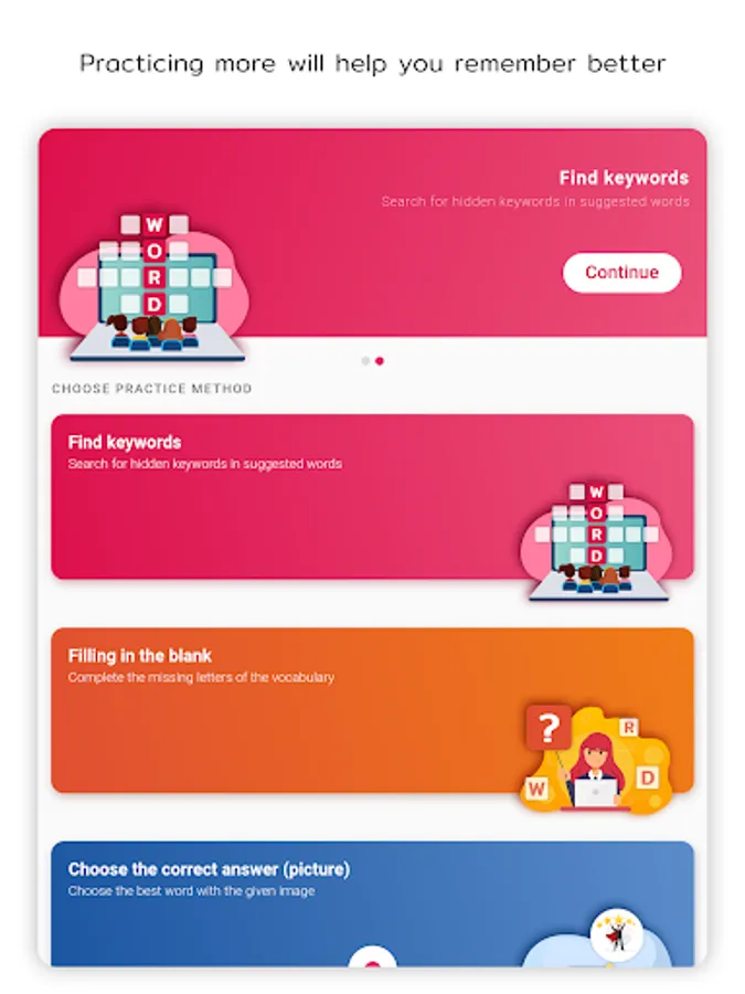 The app follows the latest trends in learning and is constantly updated. For example, you can learn vocabulary related to Global Climate Change, the Epidemic 2020, Presidential Elections, and more. This approach helps you get new vocabulary to use in real-life communication.