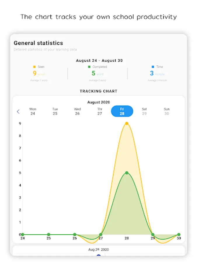 The app includes more than 10,000 words with pictures and sounds, more than 500 different topics, a lot of trending topics that are constantly updated, daily and weekly statistics, daily school reminders, support for over 45 different learning languages, modern and special words, and a beautiful, simple, and user-friendly interface.