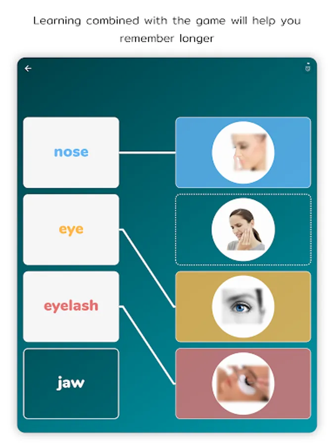 This app is smartly designed to help you learn and play at the same time. It combines vocabulary, illustrations, and pronunciation with dynamic effects and colors to stimulate memory through games. This helps you approach foreign languages like children who are learning a language for the first time. The real, vivid images help you immediately identify vocabulary when used in a real environment. There are many lessons, studies, games, and topics that are cleverly shuffled to stimulate memory effectively.