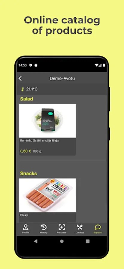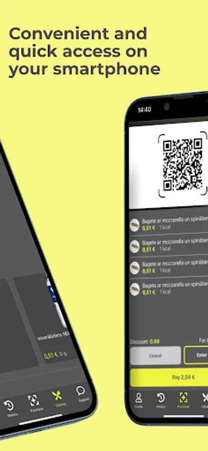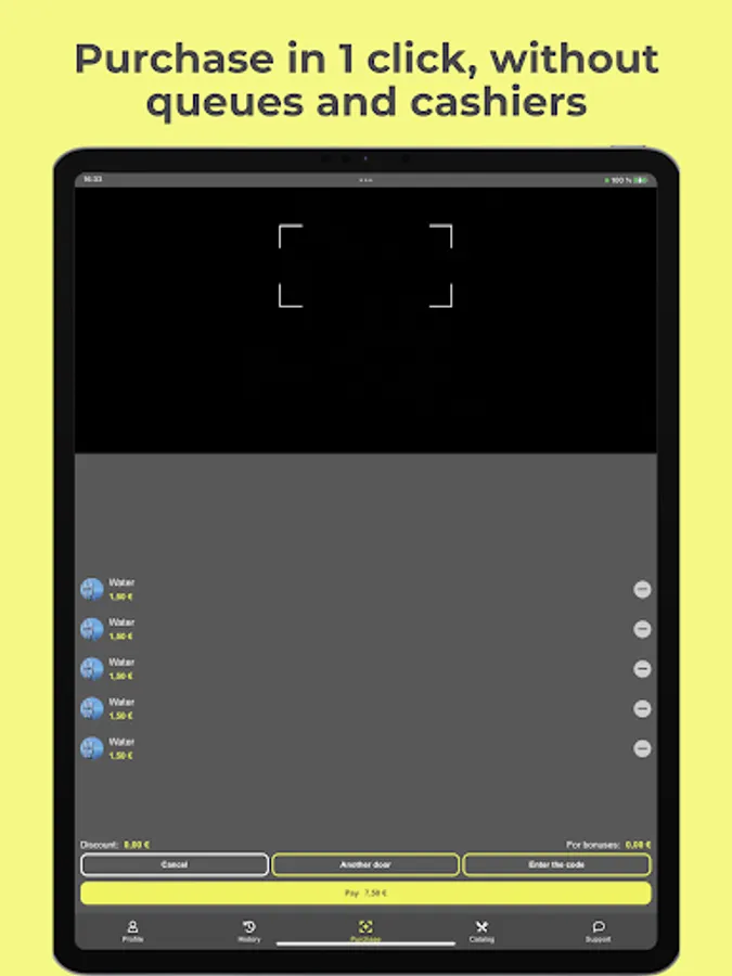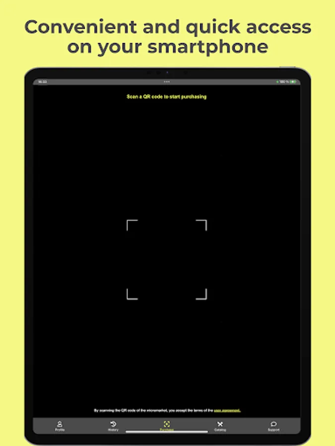 Scan the QR-code to enter the store or open a micromarket. Select the product you like, scan the code, select the appropriate payment type and make a purchase in the app.