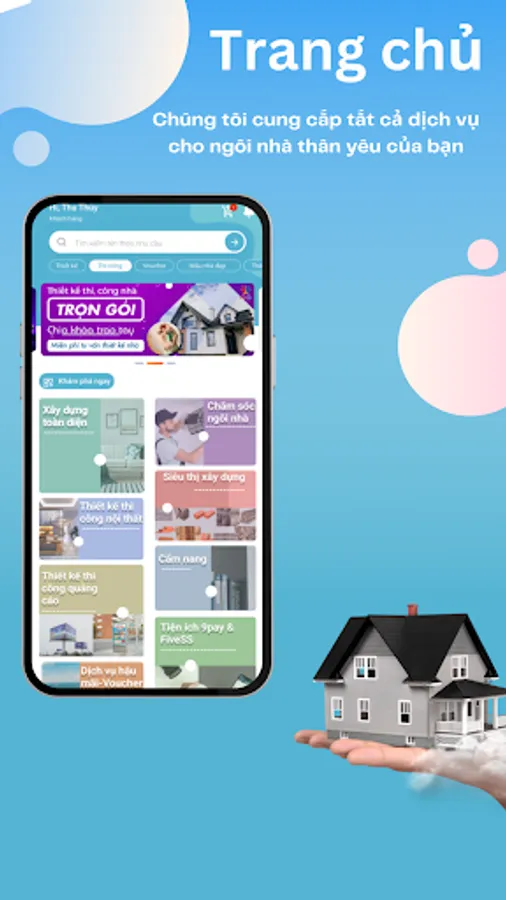 So, come to the 5-star system ("FiveSS") - here we provide the most complete, most prestigious and optimal service for your home right from design consultation to delivery. construction materials and finishing construction. After the construction is completed, FiveSS also connects services such as house cleaning after construction, planting and taking care of trees, house moving, and party cooking services.