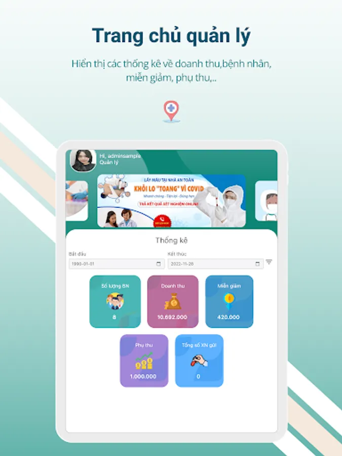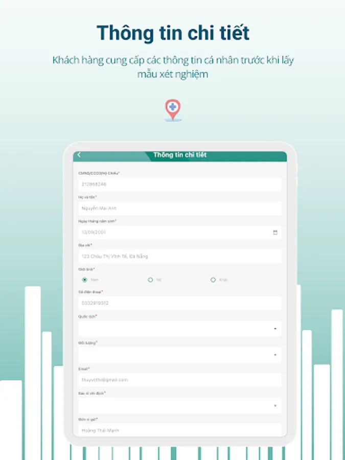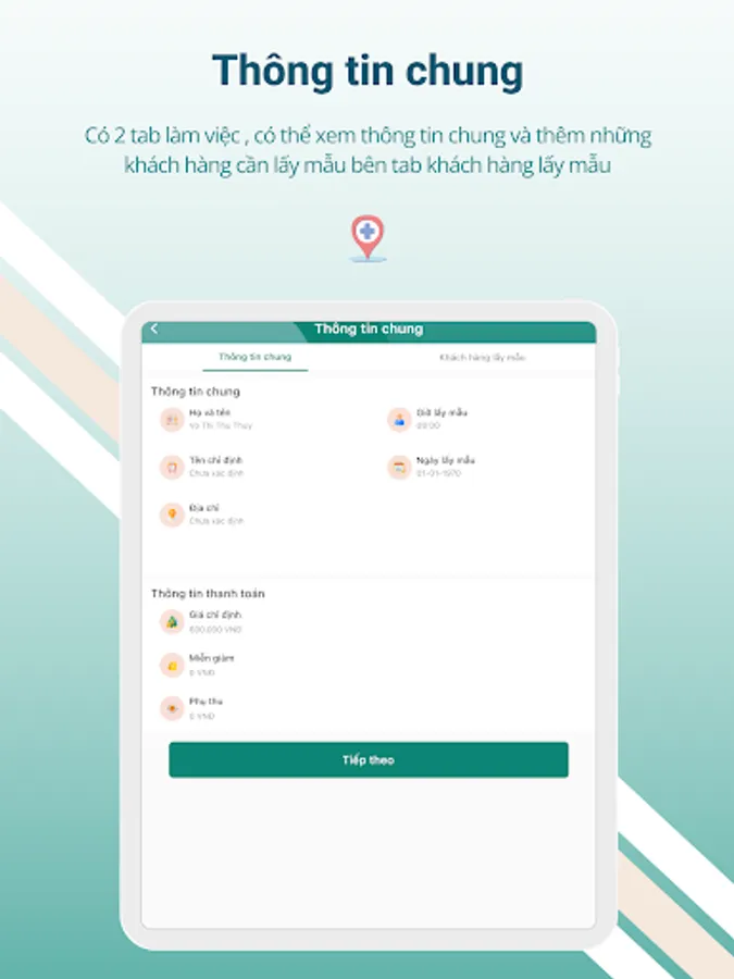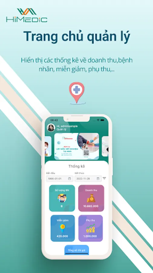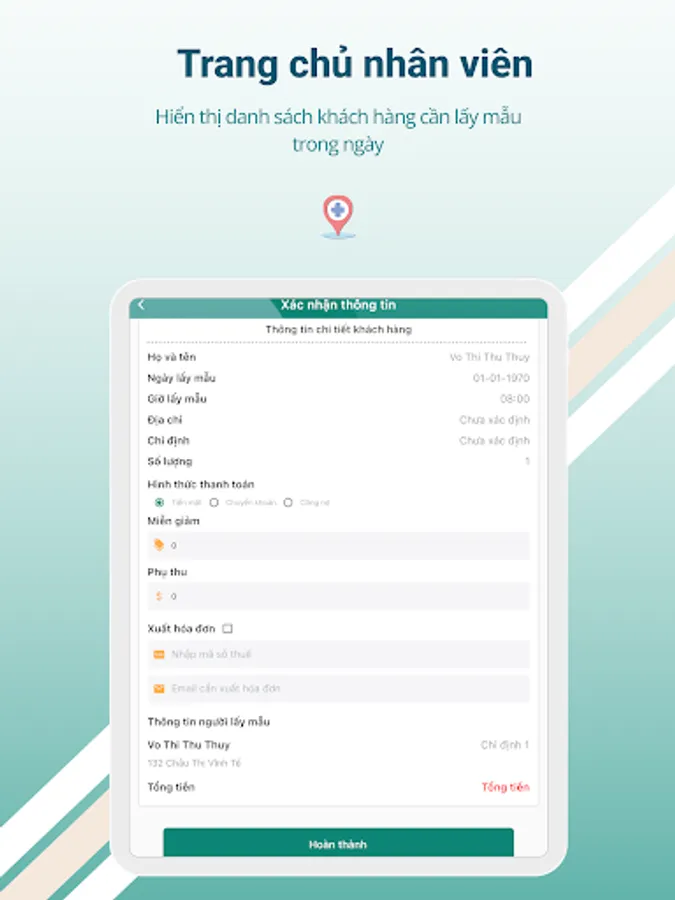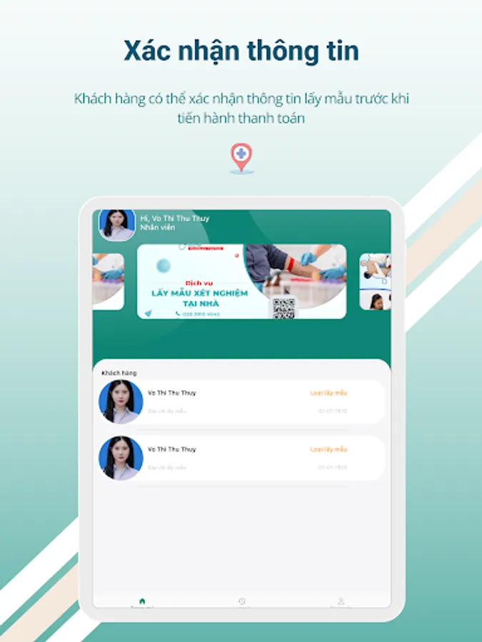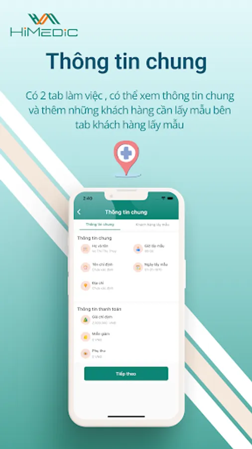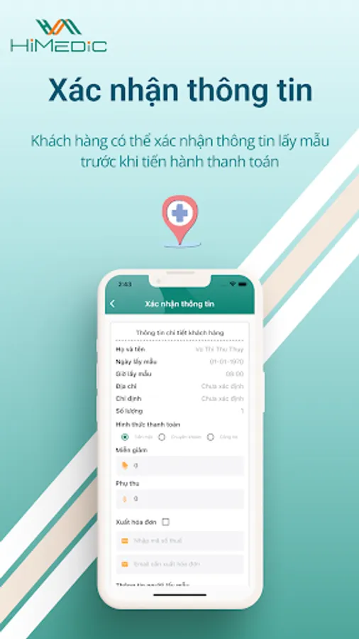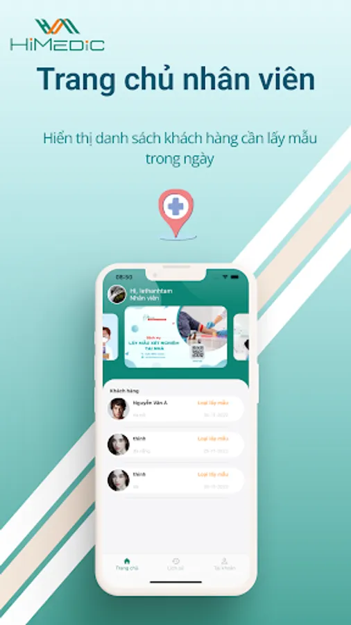 Home Sampling HIMEDIC App is a tool for the Company's Sampling staff to use during sampling at customers' homes. Staff will access the App, and enter the customer's information, about: Name, address, phone number, type of test .... of the customer. After entering, the App will link to information about the software at the office, employees do not have to enter information.