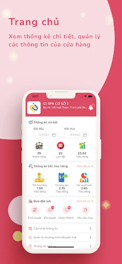 HiYou - Partner is a Beauty Schedule management application for beauty salons: Spa, Salon, Nail. This application helps the store manage and track details of appointment times, beauty services booked, and the store's busy rate from customers. Store owners can be completely proactive in arranging employees' work schedules and managing empty time slots to book new appointments. This helps increase store management efficiency, save time and optimize store revenue.