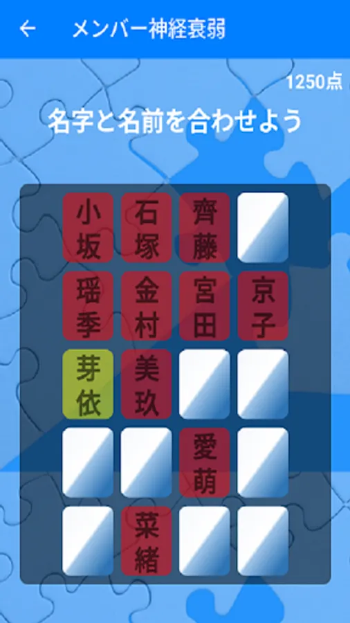 The member names are written on 20 cards, so please find the card with "Kumi" written on it and quickly tap it.
