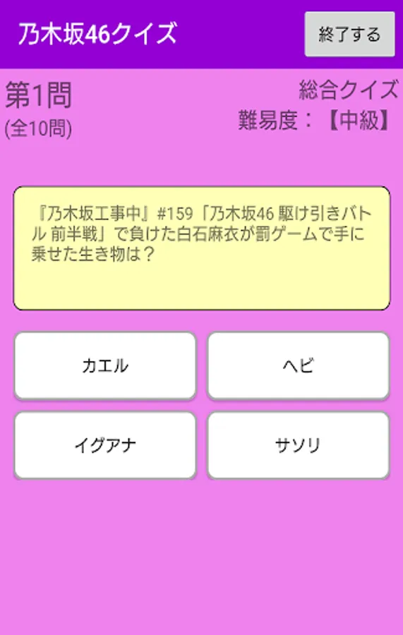 It is a mode to challenge various genres of quizzes related to Nogizaka46.