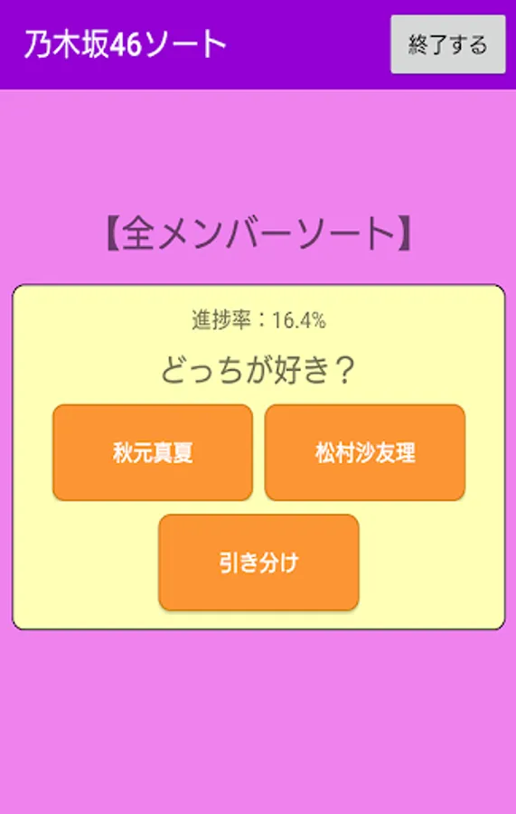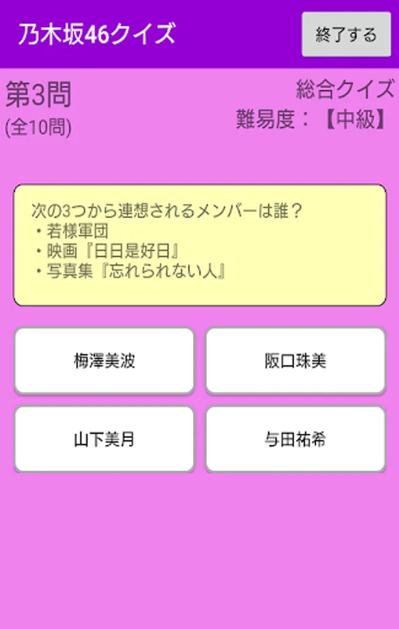 It has 3 modes, "Nogizaka46 Quiz", "Nogizaka46 Sort", and "Lucky Member Check", so please play even when you are free!