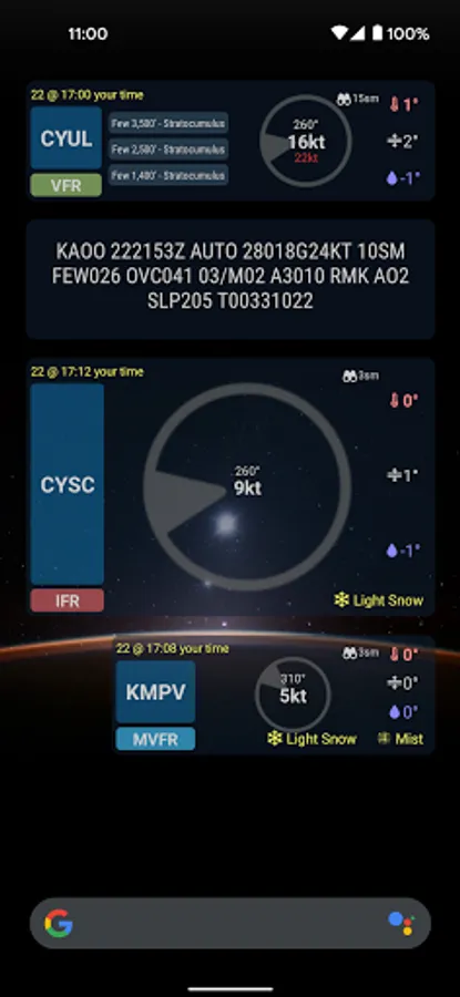 ‣ Monitor conditions at your favourite airports with decoded home screen widgets; complete with visualised wind direction, dewpoint, temperature and cloud layers.