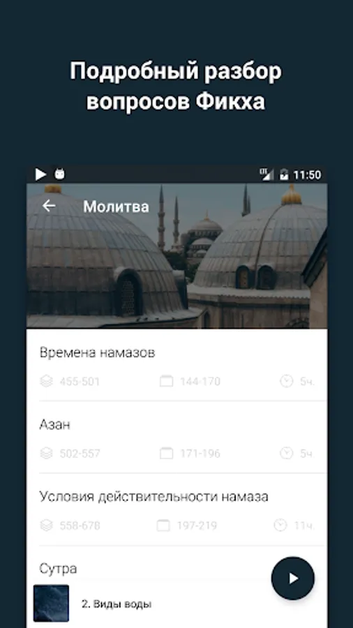 We present to your attention a unique application for the Russian-speaking Muslims of Science "Fiqh", the content of which are lessons in reading Sharh (explanation) on the collection of hadith known to us "Bulug al-Maram."