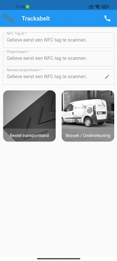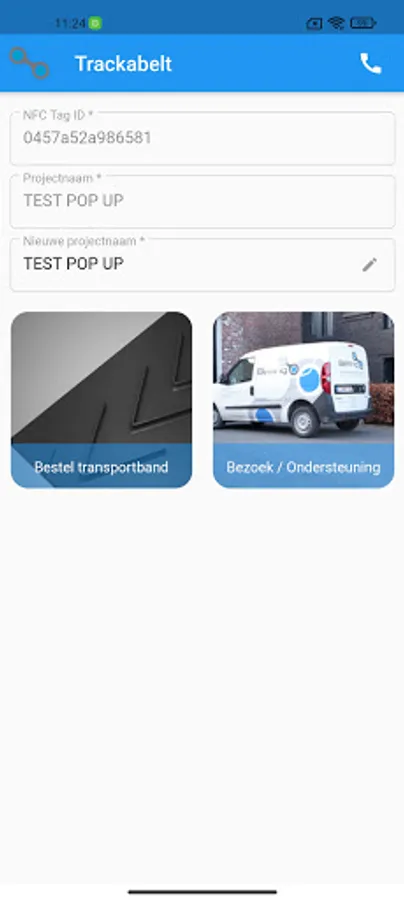 Support for customers of belting their conveyors. This app allows them to request technical support by simply scanning an NFC tag.