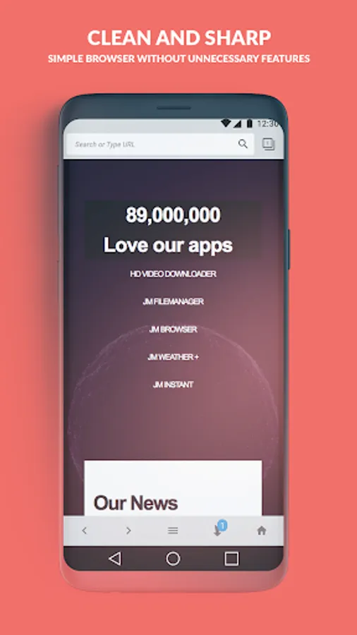JM Browserβs lightweight browser is fast and simple with intuitive design. You can always access a bookmark and browsing history for comprehensive browsing experience. The way how watching a video connects to downloading is unbelievable!
