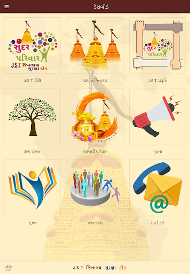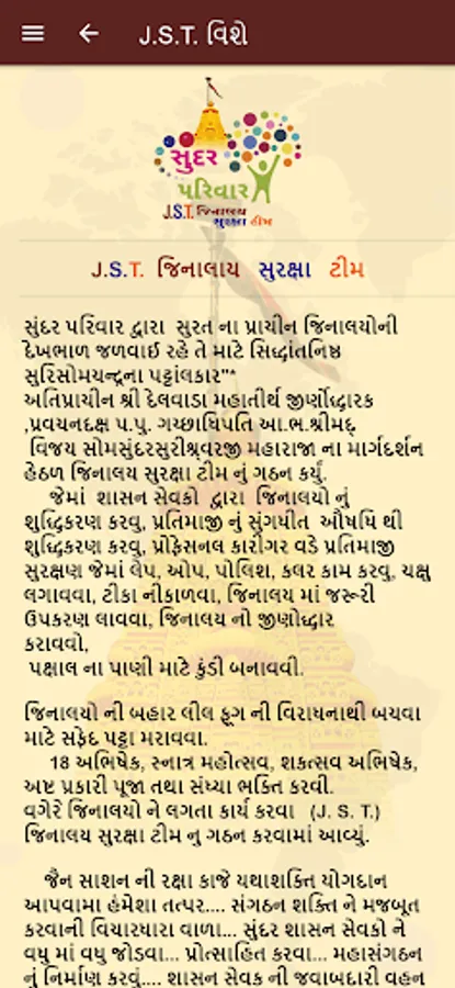 વગેરે જિનાલયો ને લગતા કાર્ય કરવા (J. S. T.) જિનાલય સુરક્ષા ટીમ નુ ગઠન કરવામાં આવ્યું.
