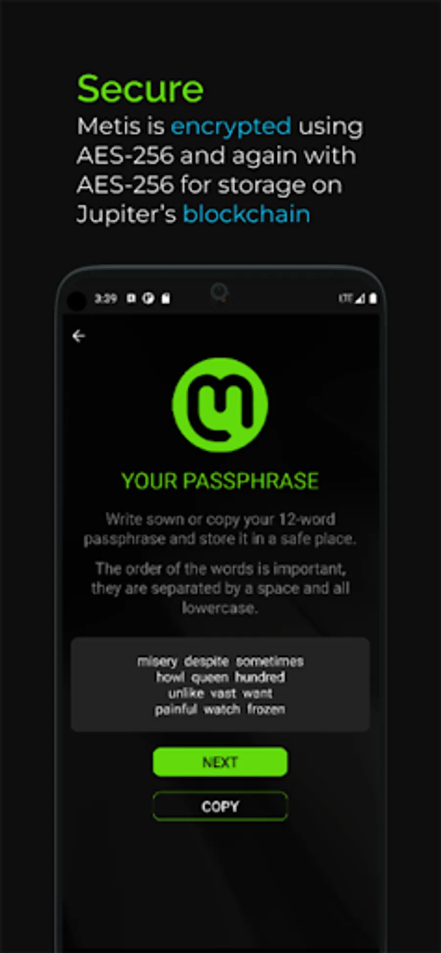 Metis securely stores every single fully encrypted message on the Jupiter blockchain