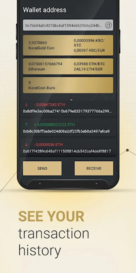Send and receive Ethereum & Karatgold (KBC) tokens instantly with anyone in the world. See your transaction history. Displaying the balance of Karatcoinbank (KCB) token in your wallet. Sign in to your existing crypto wallet or create a new one for free. Become a part of the Golden Era.