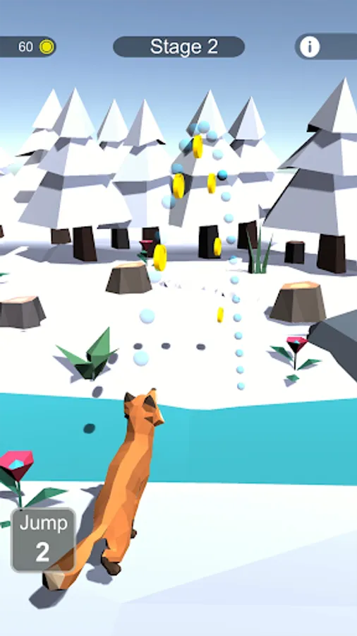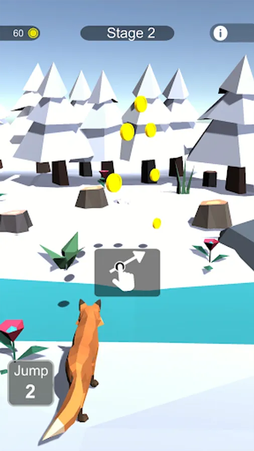 Aim for a mouse moving in the snow, and jump in time to catch it!