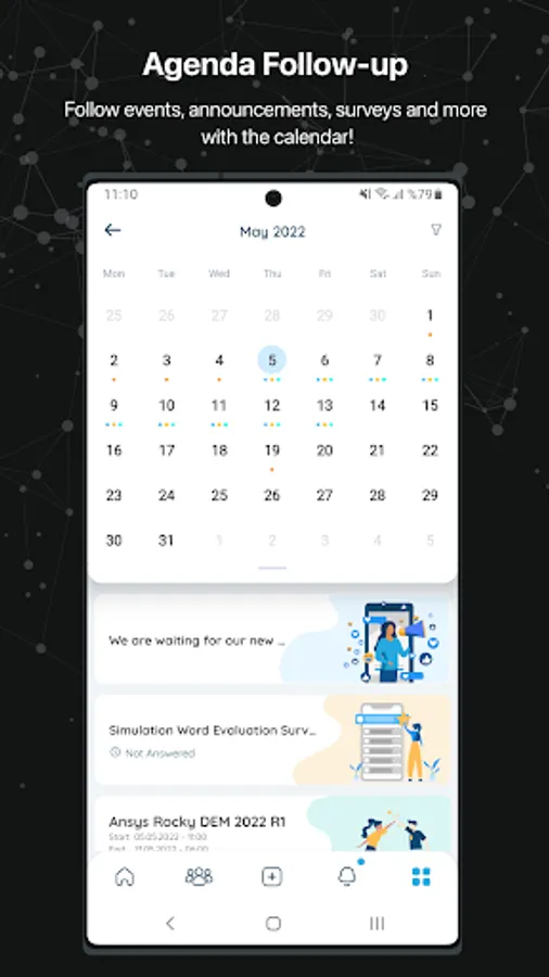 • You can increase the communication with the members and keep this communication alive with the announcements, notifications, events, surveys, group creation options and feedbacks,