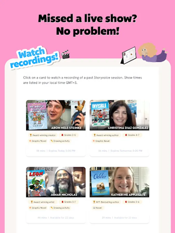 Perfect for kids in grades K–5, Storyvoice brings storytime (and beloved authors) right to your phone.