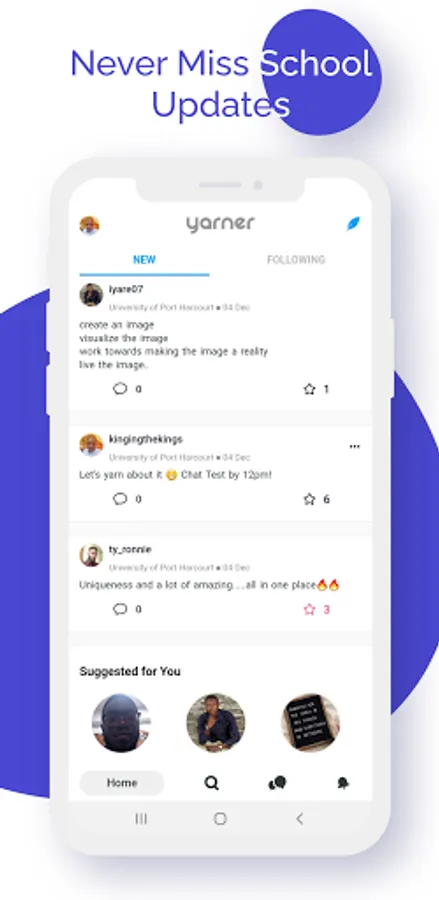Know what is Trending on Campus. Yarner is the answer to this gap in communication, you are certain not to miss out on any news or hot trends happening on your campus. Yarner brings you closer than ever before to your Institution’s Administration, friends and coursemates, you are exposed to first hand information.