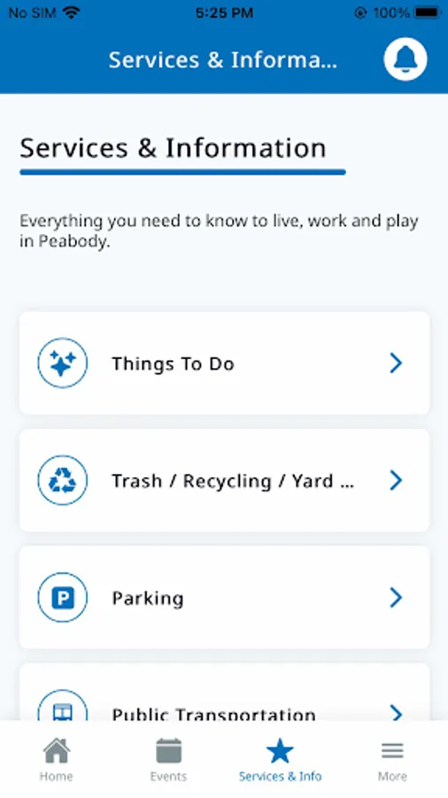 PeabodyConnect enables citizens to contact city departments, pay municipal tax bills, report problems like potholes and downed tree branches, find information on public meetings, community events and just about everything else you need to live, work, and play in Peabody.