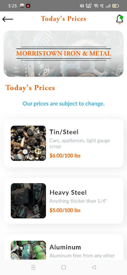 Scrap Metal prices are updated as needed due to market conditions. Features in the app include up to date pricing for all commodities. Container request forms for customers who need to schedule container service and a way to upload photos of your material for us to review and price.