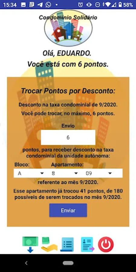 THIS IS A DEMONSTRATIVE VERSION: The condominium that joins will have its own application, configured according to its characteristics, thus being able to minimize default and promote income opportunities for its tenants.