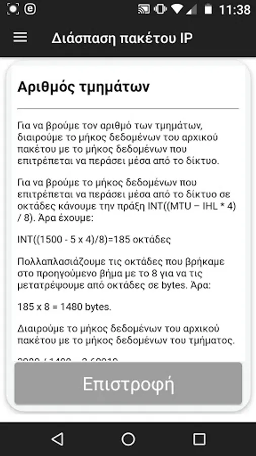 The application does not cover all aspects of subnetting and IP packet segmentation as taught in Greek Universities.