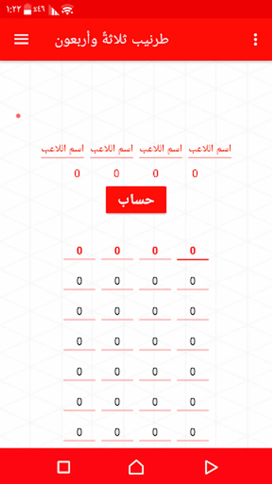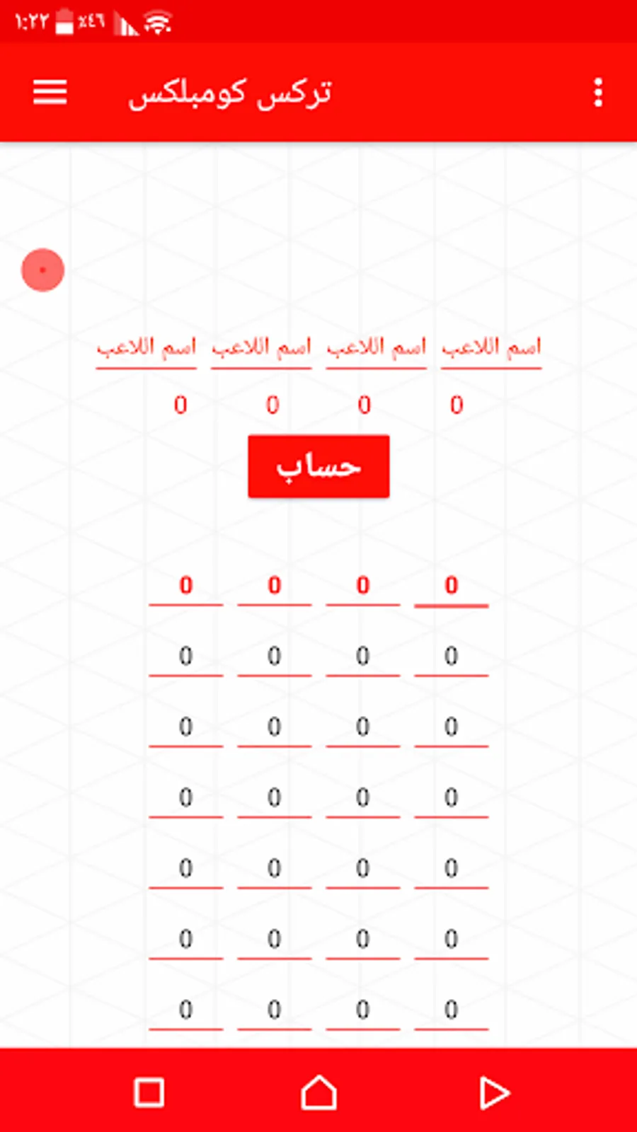 Playing cards application: Tarneeb 63 account, Trix Complex and Tarneeb 41 is a distinct and simple application for calculating the results of a card game, Tarneeb forty-one, Tarneeb sixty-three, and in addition to Trix Complex, the application consists of four screens, three for three games and the main screen, then the main screen chooses the desired game Calculate its results, and the application transforms the user to the results recording screen, where the user puts in the results field the calculation of each joule, and if he wants to collect the results, he presses the Calculate button.