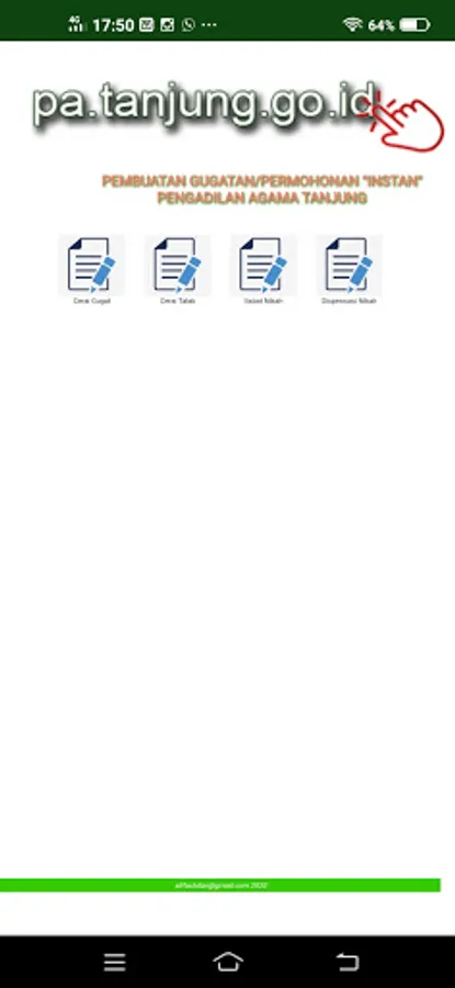 The Tanjung Religious Court Information Application online was created for access to justice seekers at the Tanjung Religious Court as a means of accountability and transparency in case management and general administration