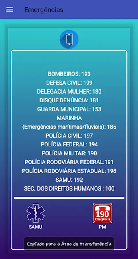 The latest update has improved layout and the addition of two buttons for use in emergencies. One to contact SAMU and the other to the police. The buttons are found on the last screen, along with other useful phones.