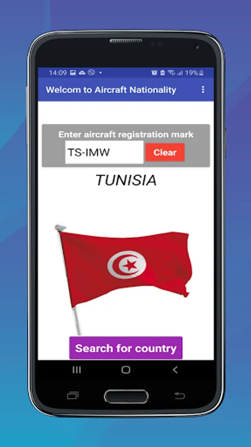 By simply tapping aircraft registration drawn on the tail (for exemple : TS-IMW ) and clicking on the button search you get the country where the aircraft is registred!