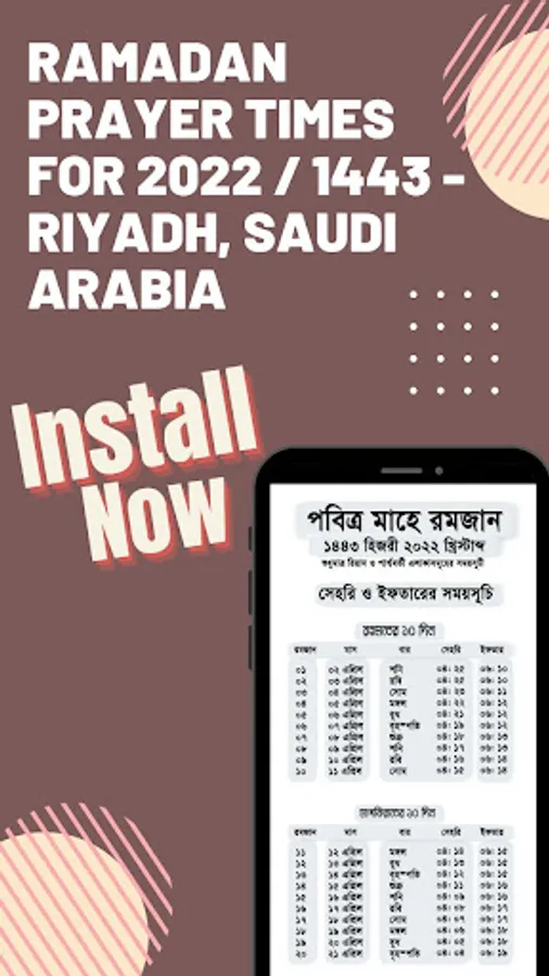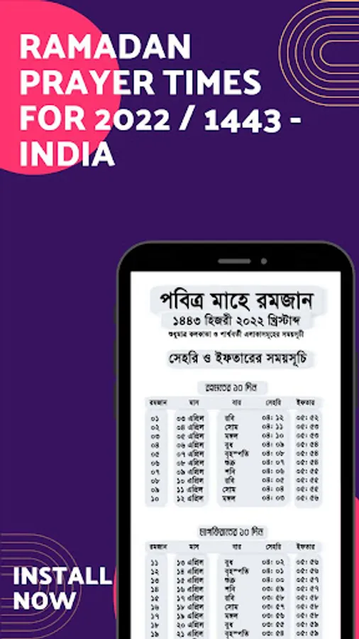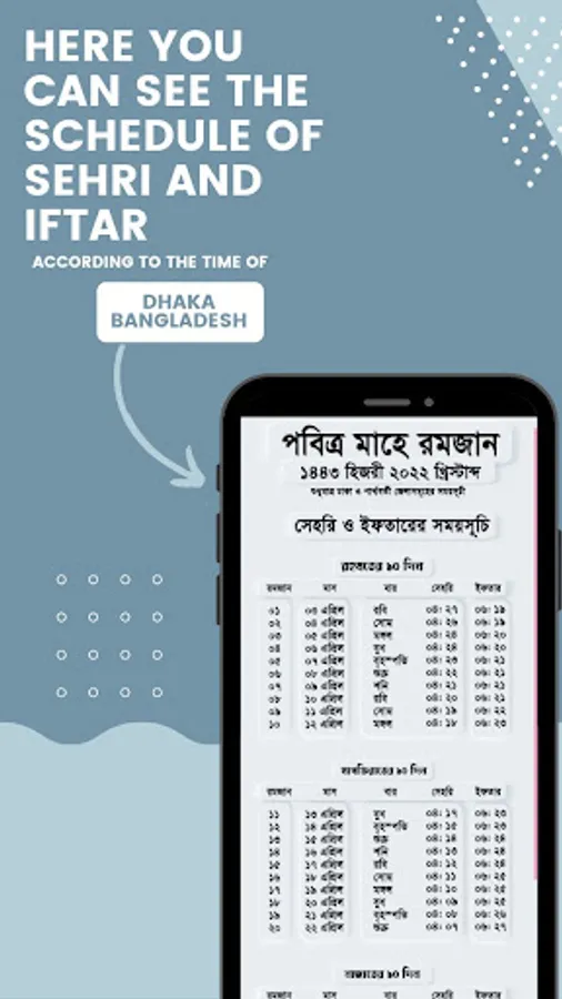 With this app you can see the schedule of the month of Ramadan 2022, Hizri 1443 in Bangladesh, Saudi Arabia and India