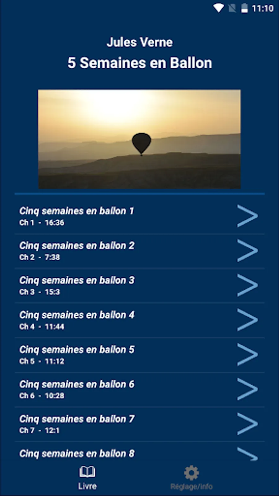 5 weeks in a Jules Verne balloon in audio streaming.