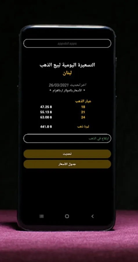 يعطي التطبيق اسعار الذهب عيار 24 -21-18