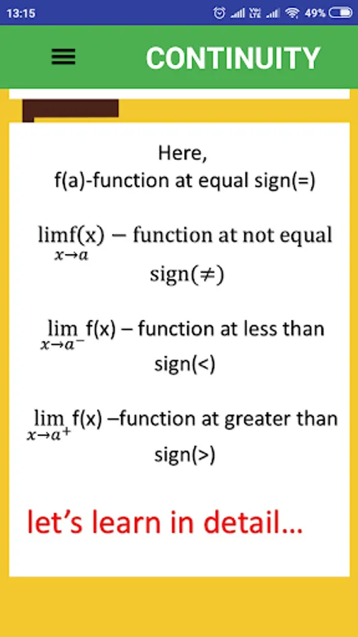 Limits And Continuity (Basic Concepts Booster) is an app which provides all basic concepts of limits and continuity in most effective and easy way..