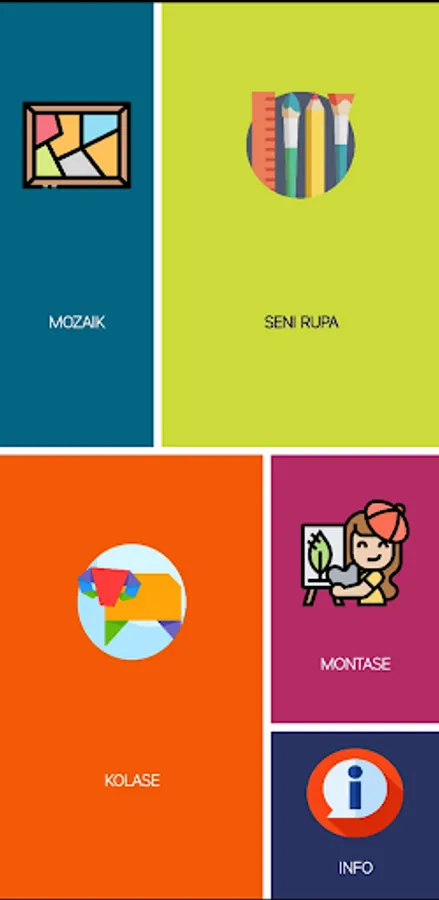 This MOKOMON application contains understanding, materials, photos of the work and also videos of making mosaics, collages, and montages so that you can better understand the differences between these works of art.