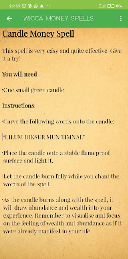 This App is dedicated to those who are interested in WICCA Spells and here you are going to get to know about Money Spells.