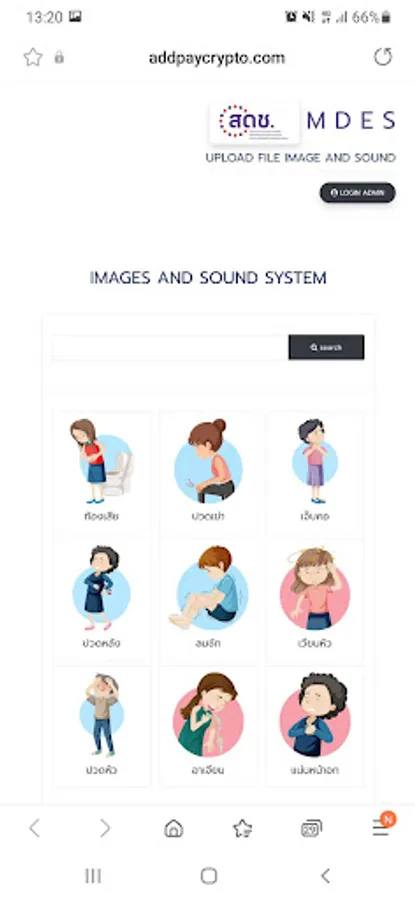 An application that helps people with hearing impairments to communicate with their interlocutors using images. Describe the behavior of the symptoms in a sound form.