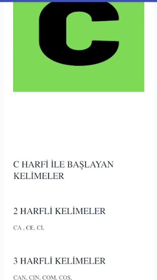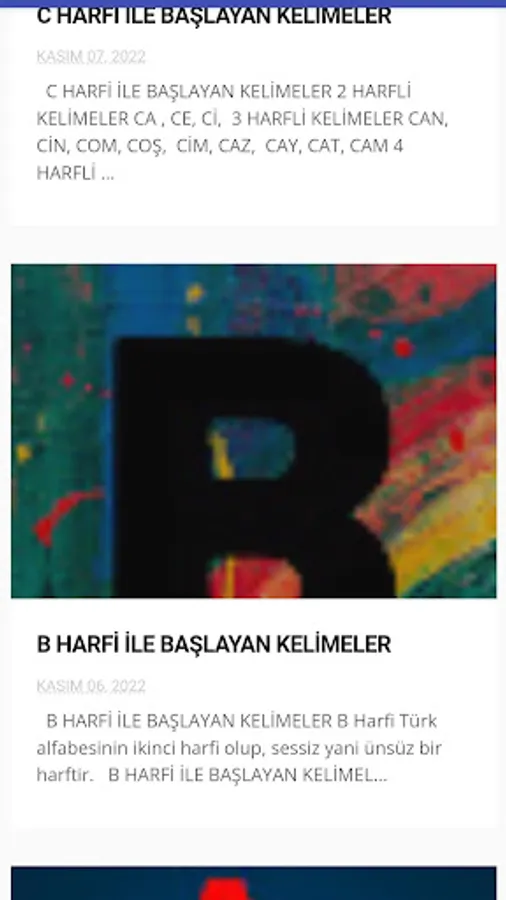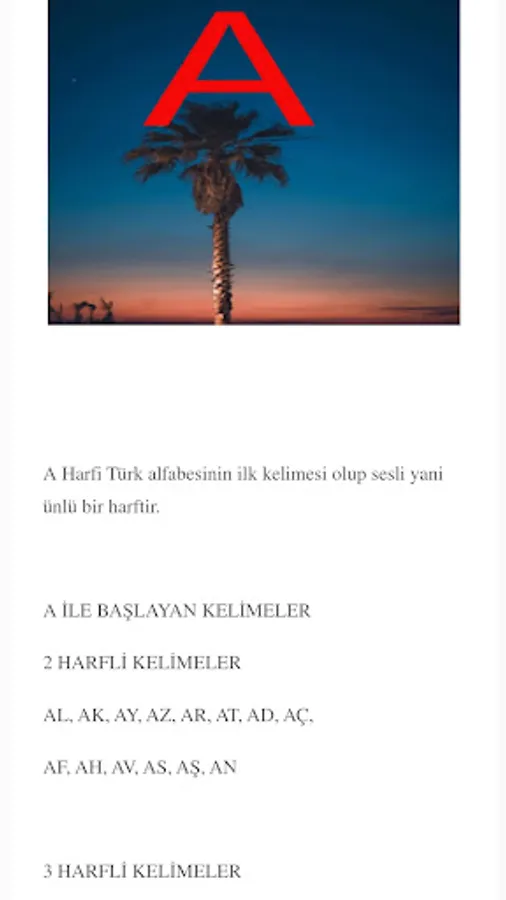 You can find the words of all the letters in the alphabet in this application.