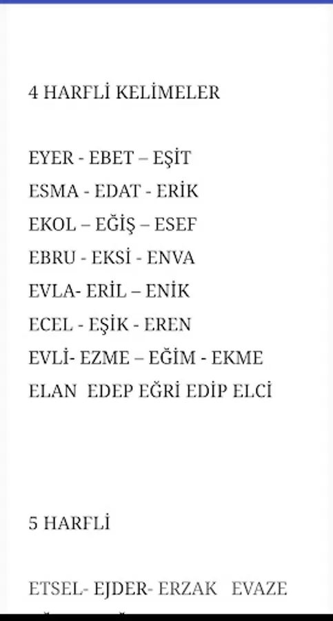 You can find all words with 2 letters, 3 letters, 10 letters and 15 letters starting with all letters from the letter A to the letter Z in this application.